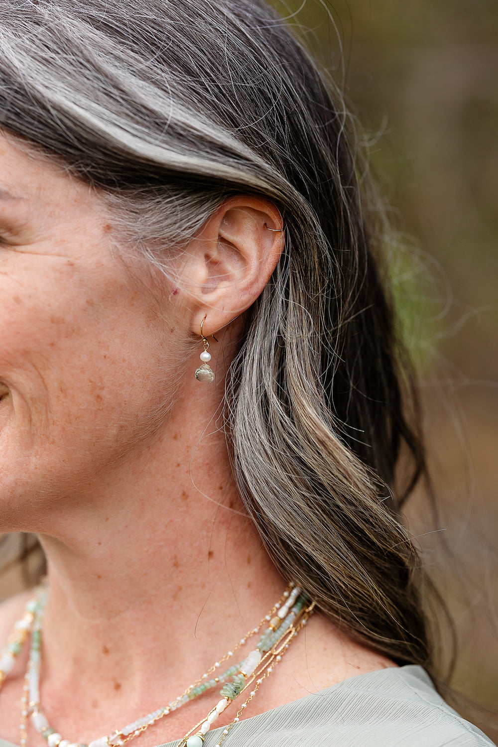 Solace Freshwater Pearl, Aquamarine With Moonstone Cluster Earrings