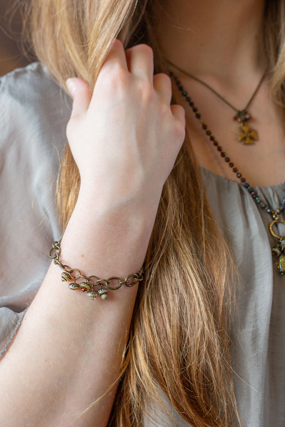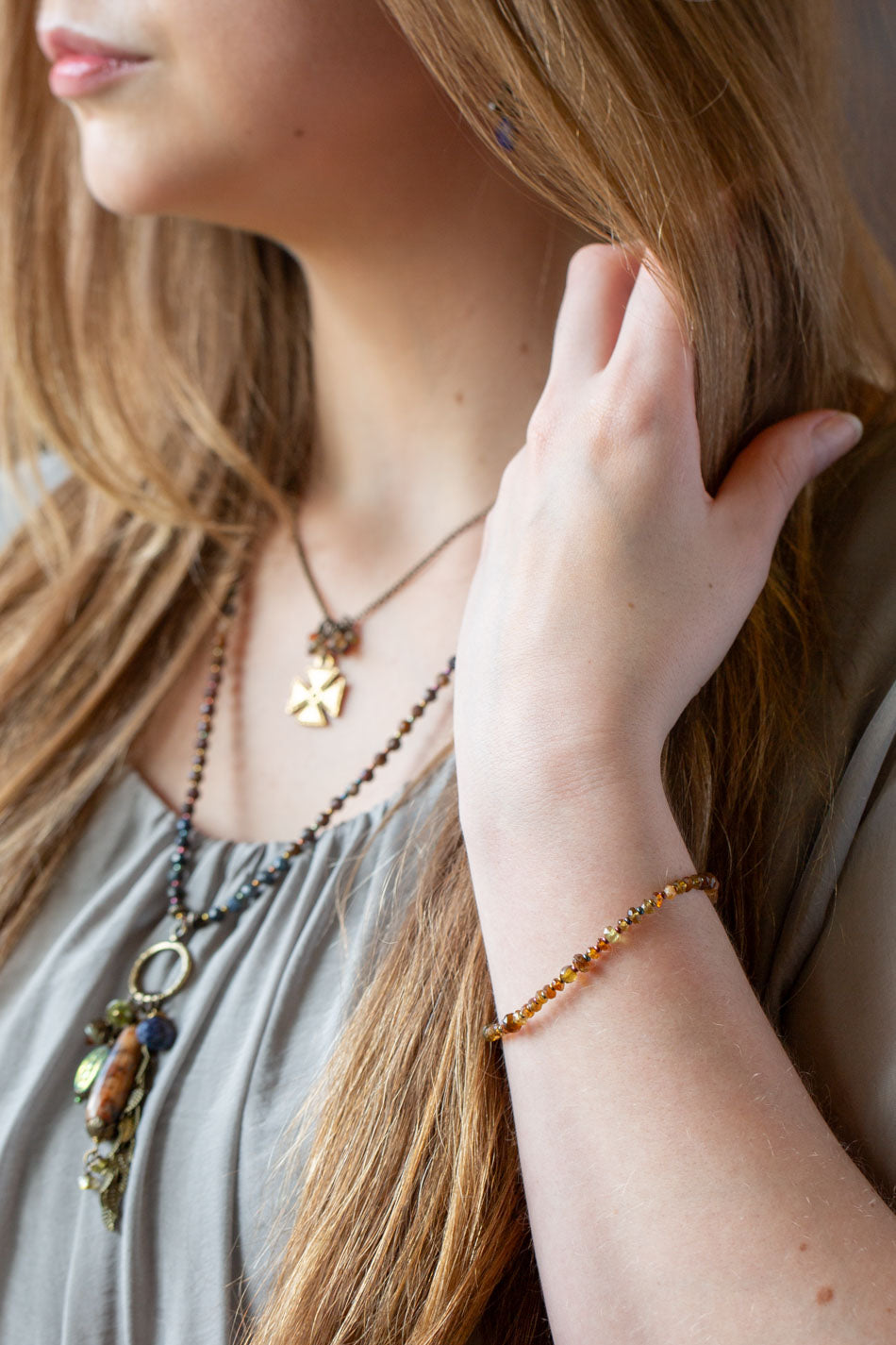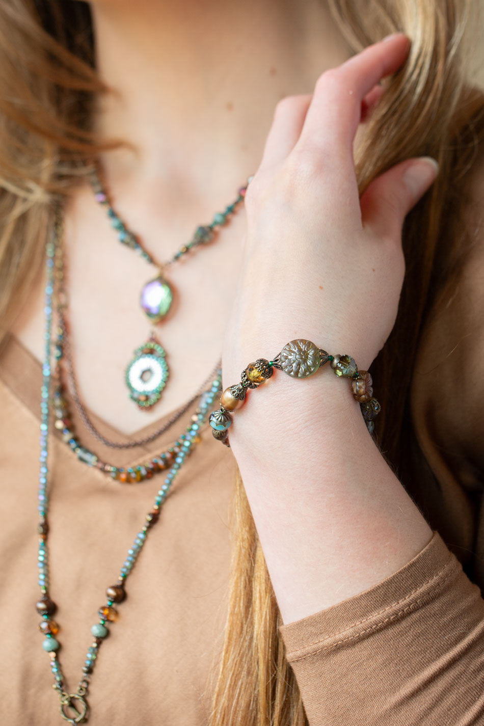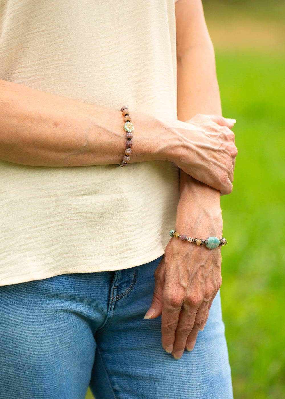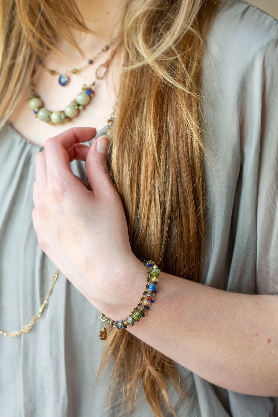 Earthen 7.5-8.5" Jasper, Czech Glass Multistrand Bracelet