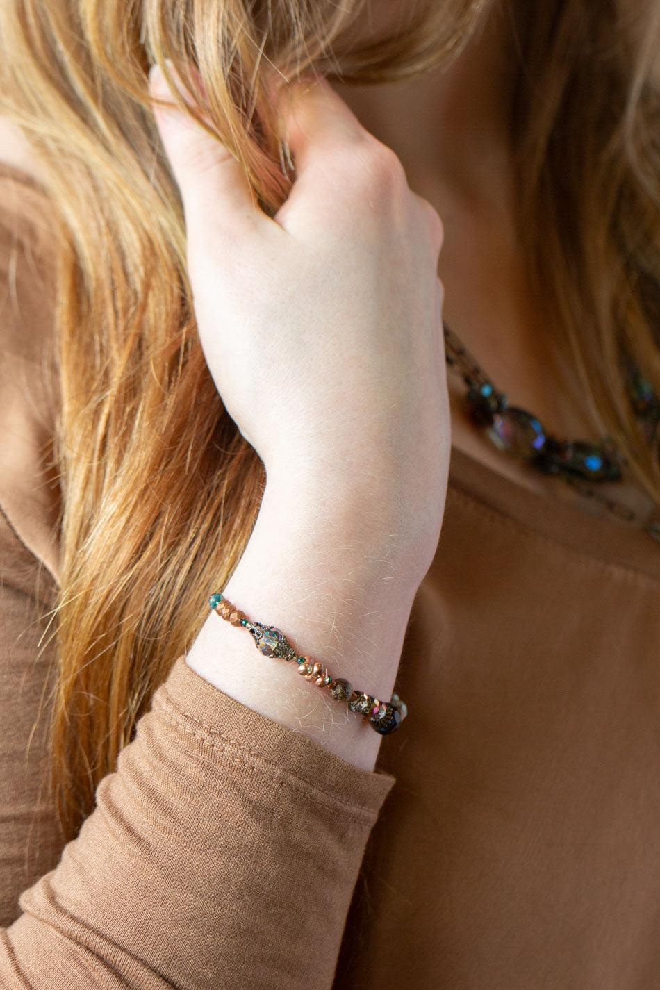 Crisp Autumn 7.5-8.5" Czech Glass, Crystal Multistrand Bracelet