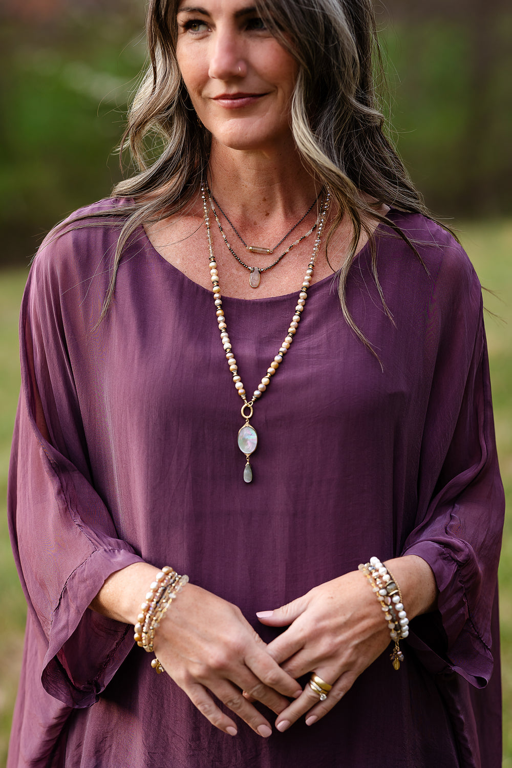 Midnight 20-22" Amethyst, Freshwater Pearl, Crystal Multistrand Necklace
