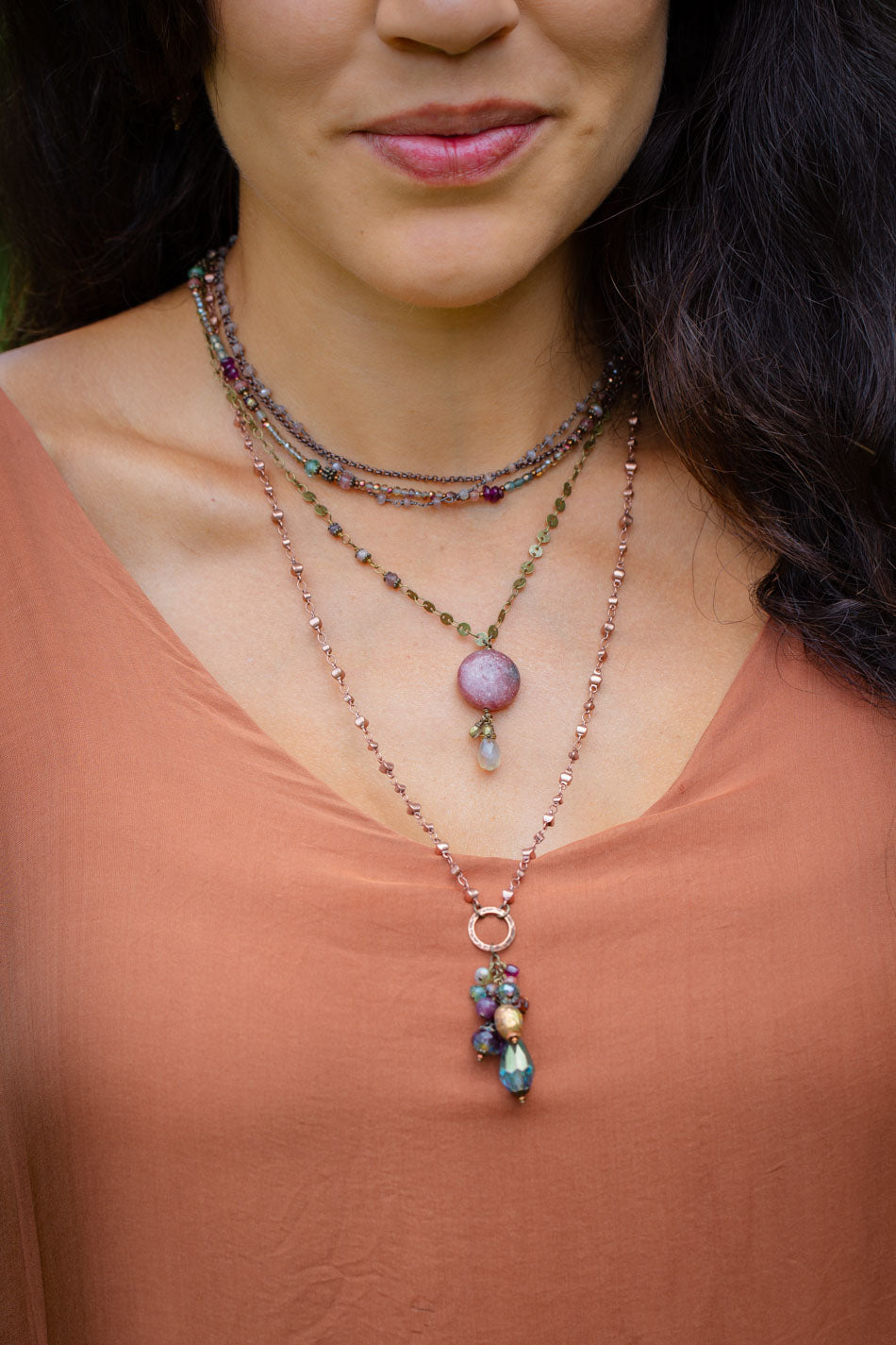 Gumdrop 21.5-23.5" Garnet, Peach Moonstone, Blue Apatite Multistrand Necklace