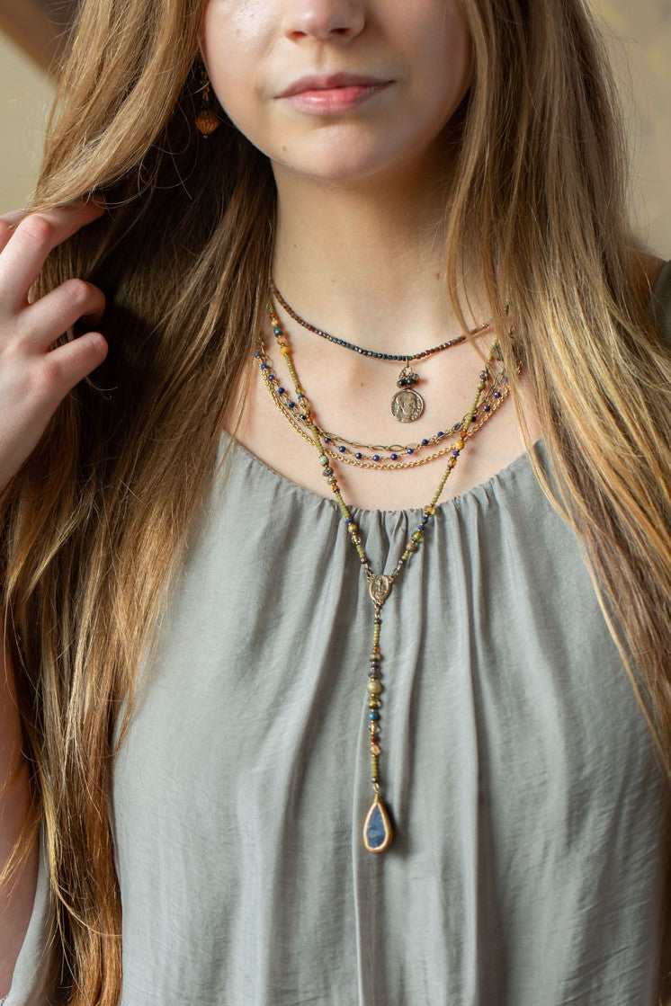 Fae 20-22" Iolite, Prehnite, Apatite Multistrand Necklace