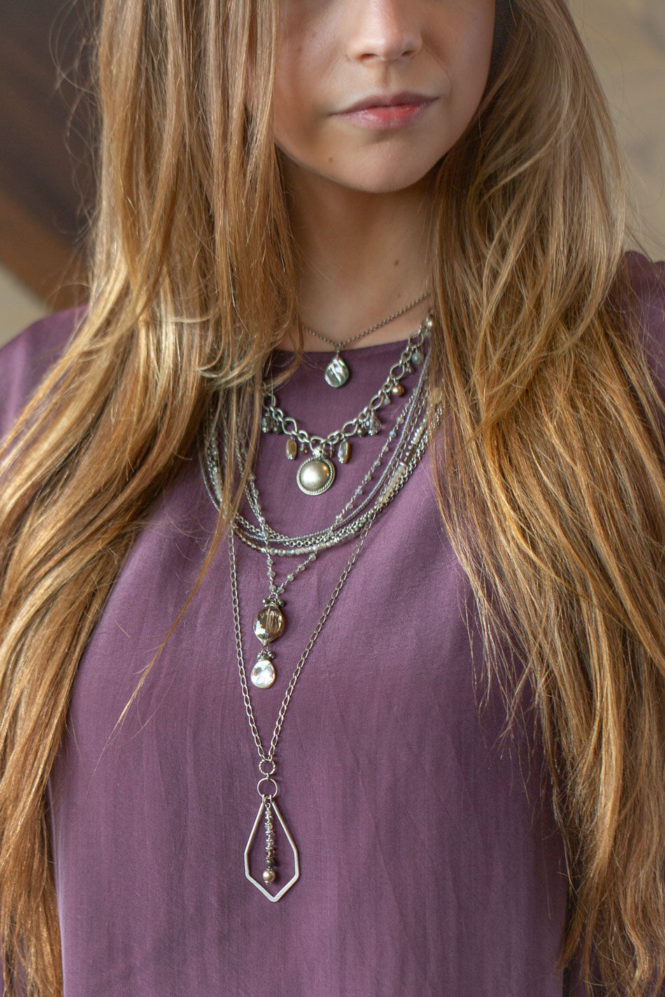 Windsor Castle 15.5-17.5" Smoky Quartz, Crystal, Abalone Simple Necklace
