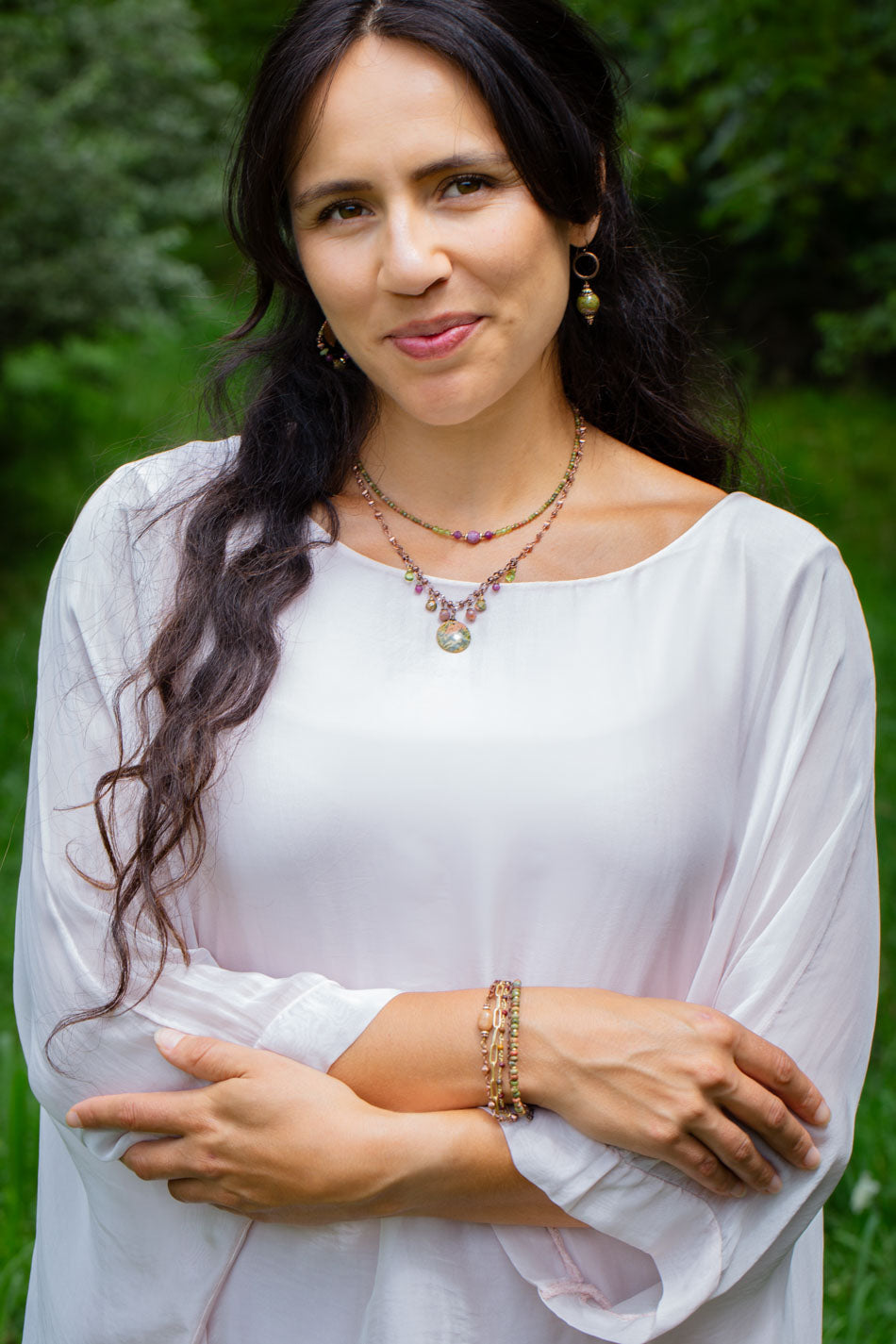 Rosebud 35.5-37.5" Sunstone, Iolite, Labradorite Collage Necklace