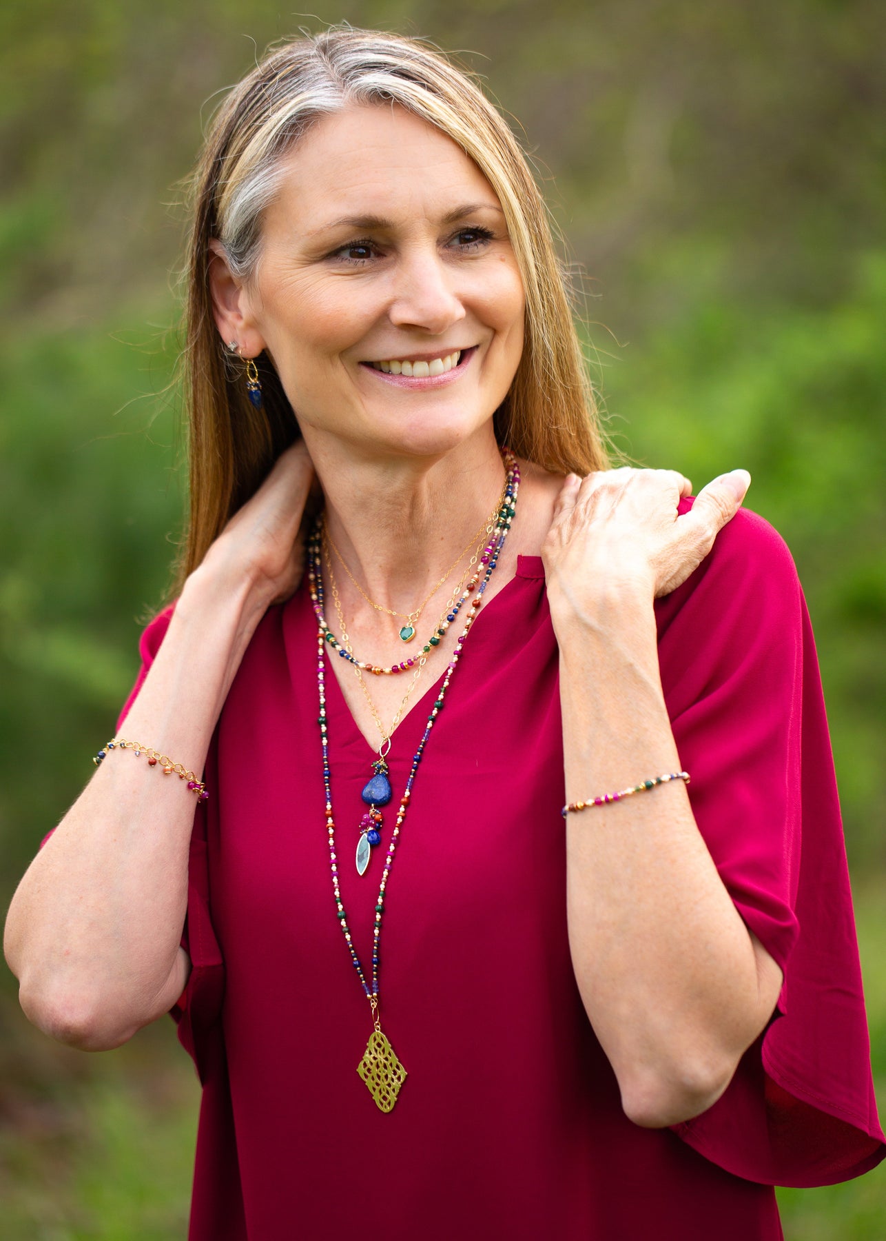 • Lapis Lazuli, Red Jasper, Fuchsia Jade
