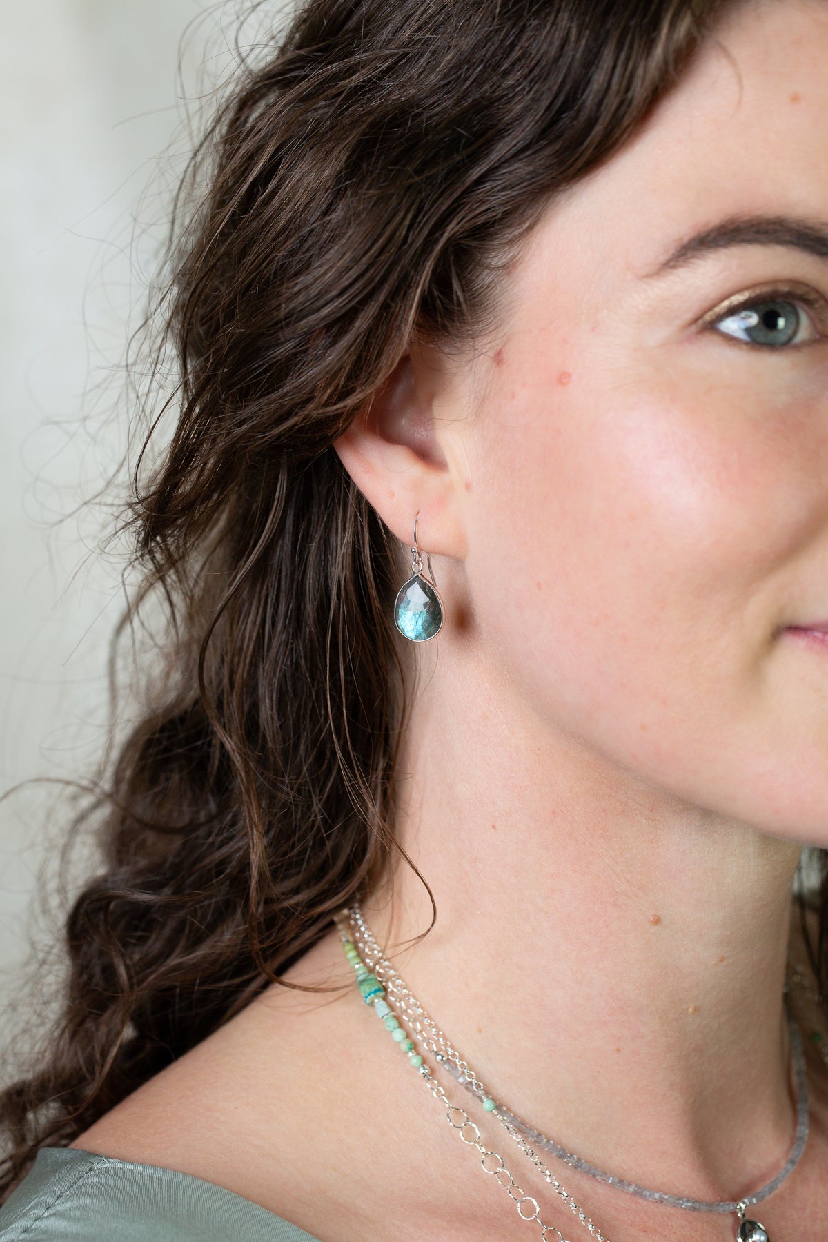 Mystic Labradorite Teardrop Bezel Simple Earrings